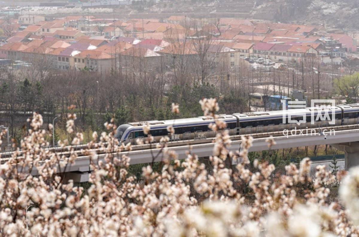 青岛地铁蓝谷快线穿行于崂山北宅的千亩樱桃花海中。(来源:青岛地铁)